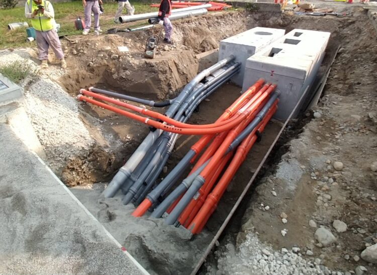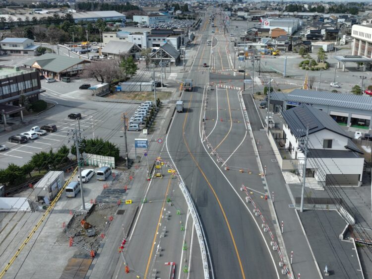 2026.03.16 R6.7国道8号入善地区舗装・電線共同溝その2工事 土木 発注者:富山河川国道 施工エリア:入善町入膳 施工年月:2026年3月 電線の地中化に向けて、配電線を地面に埋設しました。 [施工前]